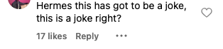 在Hermès這個天價單車話題中,不少網民紛紛表示「賣得咁平,我懷疑係咪真係踩到架?」、「Hermès係咪開玩笑?」、「如果將架車放係倫敦,唔洗2分鐘你就可以講byebye」,一連串的留言惹起網民狂Like!