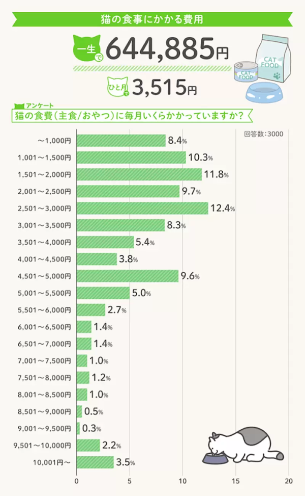 雖然每個月總數目未必算太大,長期累積下來仍是一筆不小的開銷。日本保險公司透過調查希望讓市民在養貓前,先了解實際需要的花費,避免飼養後基於經濟原因而棄養的狀況發生。