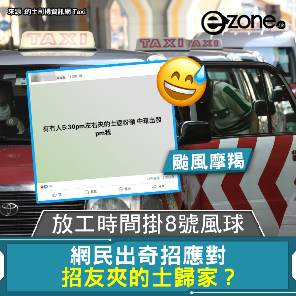 颱風桃芝|8號風球殺到!天文台於今晚改發8號烈風或暴風信號,多個公共交通工具都相繼宣布8號風球下的服務安排。不過,曾有疑似上班OL因為8號風球接近放工放學的繁忙時間就選擇出帖文,上網招網友夾的士歸家,引起熱議。