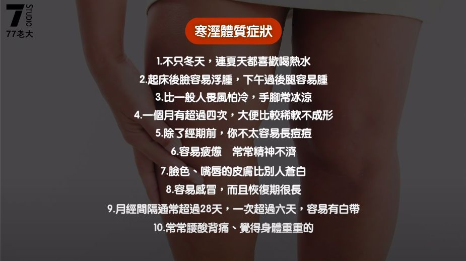 想要解決「濕氣」問題,就要先了解自己所出現的身體毛病,是否與「濕邪」有直接的關係!77老大為此便列出了10大濕氣重徵兆,供大家自行判斷!