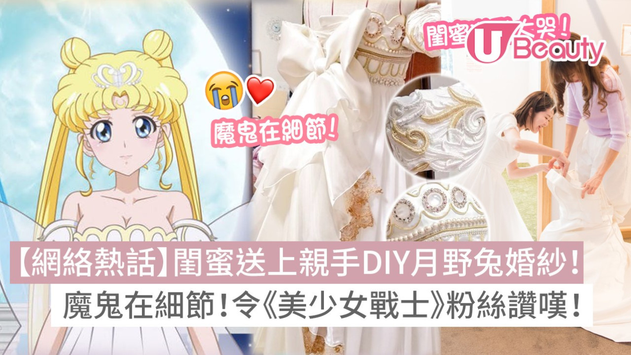 《美少女戰士》是不少90後、80後的童年回憶,在世界各地一樣受歡迎,相信大家小時候都很想穿上月野兔的戰服!早前於日本就有一位女生為即將結婚的閨蜜好友親手DIY了一套《美少女戰士》婚紗,把這套魔鬼細節的婚紗照片上載了Twitter,獲得了大批《美少女戰士》粉絲的讚嘆,網友都留言:「人生可以有這樣閨蜜實在太幸福!」