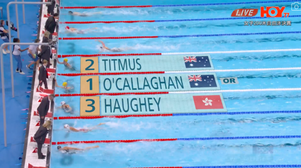 「香港女飛魚」何詩蓓繼張家朗在男子花劍個人賽奪金後,在女子200米自由泳決賽中,以1分53秒92的成績奪得銀牌。除了為香港贏來第一面銀牌外,更成為香港首位在奧運奪得獎牌的泳將,更打破亞洲紀錄。