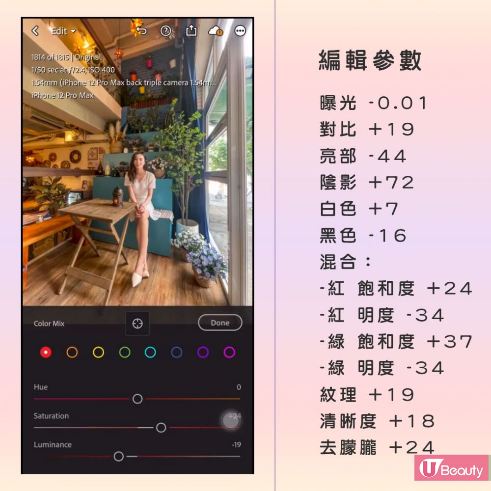 專業級調色APP一定要提Lightroom,而剛接觸Lightroom的你,是不是不知從何入手呢?其實它與iPhone內建的都大同小異,反而多了可調整的項目,例如混色飽和、白點值等,可以更仔細地編輯照片。