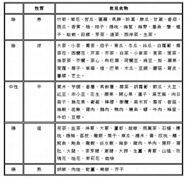不同性質的食物對身體有不同影響;例如風濕關節炎病患者,在寒冷的冬天特別感到四肢關節疼痛不適,這時進吃一些溫熱食物對舒緩不適很有幫助。又或者對於一些患熱性皮膚疹的人,在炎熱環境會非常辛苦,若適當地進吃寒涼食物亦有助緩解。所以大家都應該注意均衡飲食!