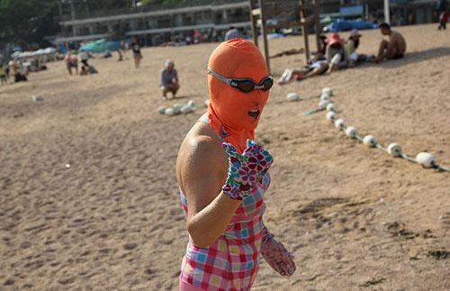 每年夏天,在中國青島市的沙灘上,你會看到很多中年女性(俗稱大媽)戴著面罩游泳,防止皮膚曬黑,這面罩深得大媽歡心。千萬不要大驚小怪或是偷偷竊笑,你可知道這樣當地人自創的「防曬神器」(又稱「臉基尼」)已榮登國際時尚雜誌的版面!