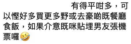 文章一出,不少網民都稱女網友為「大小姐」,認為機票省下的錢數額不少,可以投放在更好的地方,如果只是單單為了坐在一起而多花幾千元,女網友應該倒貼機票錢給男友。但亦有網民理解女網友與男友第一次出國旅遊,想坐在一起有情侶的回憶,亦是無可厚非。不知讀者又能不能理解女網友的心情呢?