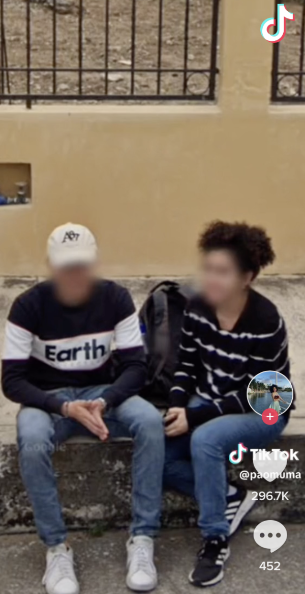 不過她怎樣也沒料到Google Map的街景車拍下了他們幽會的證據!某天寶拉的朋友突然告訴寶拉,她在查詢地圖時發現二人在路邊坐下約會的畫面。寶拉得悉後好氣又好笑,更將這個經驗放上社交平台上分享!