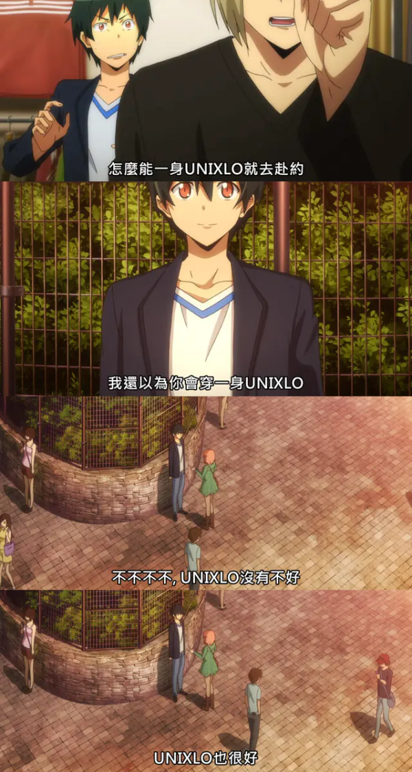 作為日本速食時裝龍頭之一的UNIQLO不但深受日本人歡迎,在香港亦受到不同年齡層人士的青睞。然而,一名台男在討論區Dcard以「約會不能穿UNIQLO嗎」為題發文,表示他近日重溫某動漫作品時,發現男主角準備跟女同事約會時,朋友看了他的打扮後說,「怎麼能一身UNIQLO就去赴約?」而後來男主角和女同事見面後,女方也說:「我還以為你會穿一身UNIQLO。」台男藉以認為日本人對的國民品牌UNIQLO似乎都帶嫌棄的口吻,便發文詢問廣大網民:「所以約會真的不能穿UNIQLO嗎?」