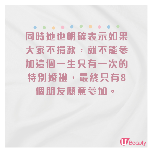 準新娘要求朋友捐錢辦夢幻婚禮
