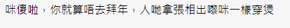 樓主更表示她是做零售業的,早前才被男友姐姐追完數,只感覺很尷尬開始在想應用什麼藉口拒絕拜年。網友看後紛紛表示樓主盡快結婚就不用被男友姐姐追數,以後返工有特別「關照」,更有網民笑言告訴男友自己腳臭,不方便入屋除鞋。不過大部分留言都是認為樓主終有一天都會見家長,不能避免,無需要逃避!