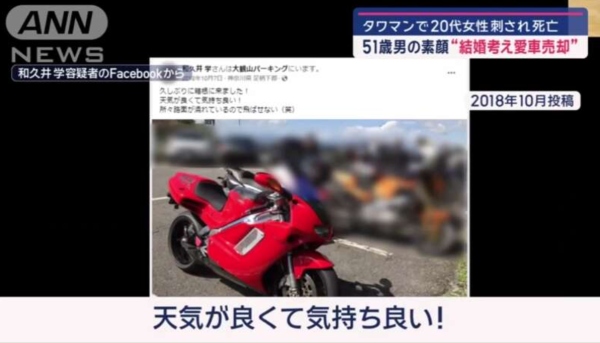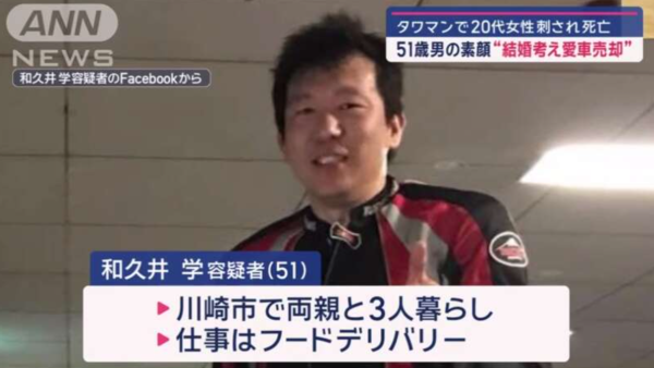據知現年51歲的日本男子和久井學在4年前認識了經營餐廳的女子平沢俊乃,他與相差25載的平沢俊乃不久後打得火熱,但戀情只維持短短一年就結束。和久井學今次在殺害平沢俊乃後,其父親受訪時透露兒子在幾年前曾向自己表示會出售自己多部具有價值的愛車及電單車,目的是為了與平沢俊乃結婚,但父親得知二人分手後就懷疑女方是「陪酒女」,並指兒子為了她賣車兼借錢,數目一共多達150萬港元。