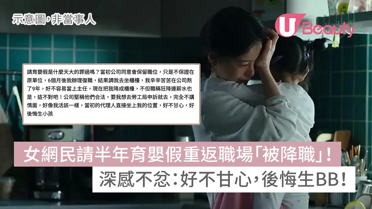 有不少職場女性對於懷孕一事都感到擔憂,因為當中會帶來生活中風險,例如失業、工作生涯受限。早前就有位台灣女網民透露自己請了接近半年的育嬰假,好不容易返到公司上班後,發現原本的主管職位竟然被其他人取替,最後被降為櫃台員工,人工亦少一大截,讓她不得不表示,「好不甘心,好後悔生小孩。」