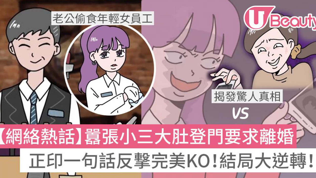 現代的家庭離婚率高,而出軌便是其中一個原因。一名有婦之夫戀上女員工,小三卻囂張地在大婆面前親吻,更登門指自己懷孕要求對方讓步,誇張行徑令人氣得咬牙切齒。不過最後大婆一句說話反擊,令結局大逆轉!一起來看看是怎麼一回事吧!
