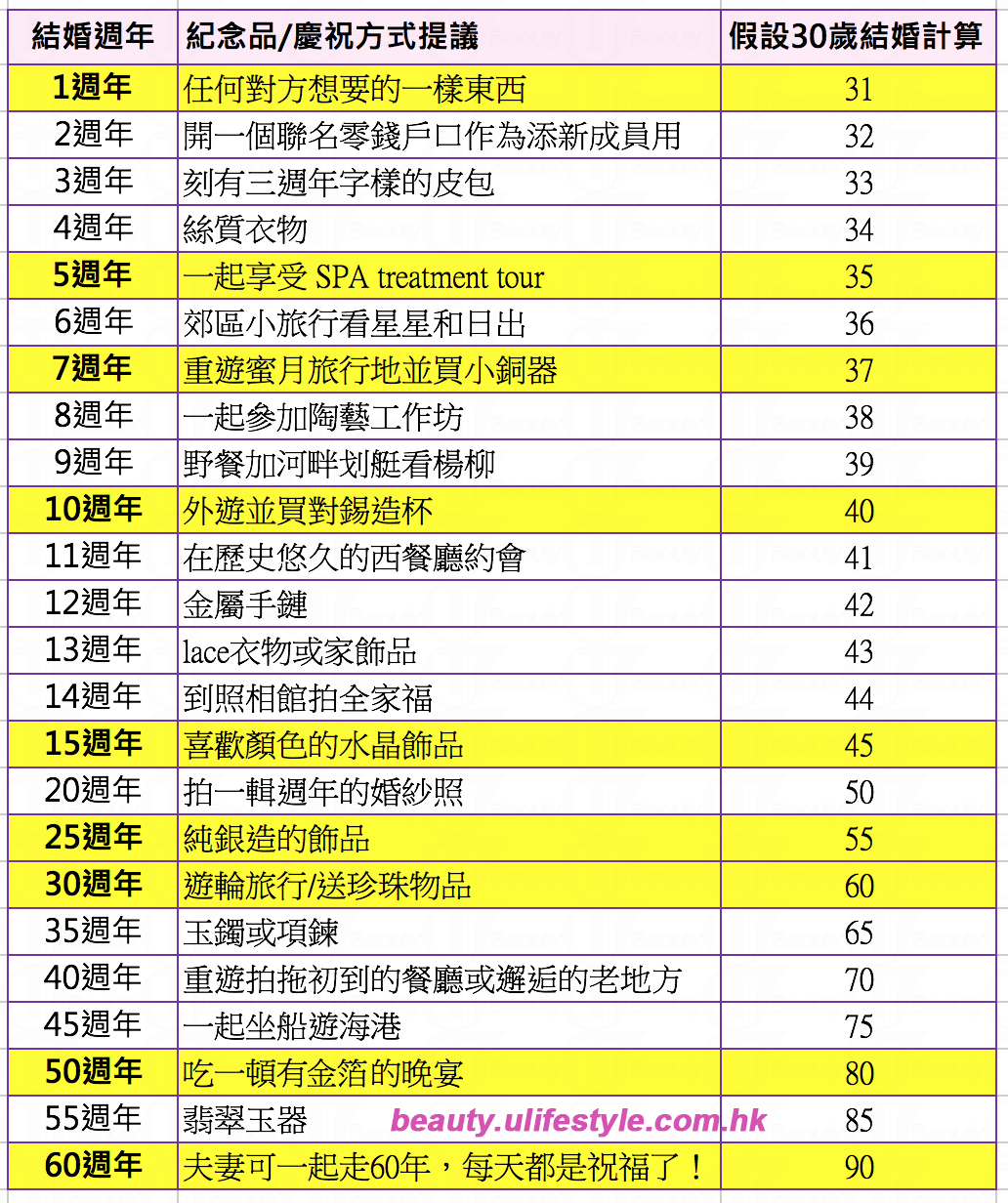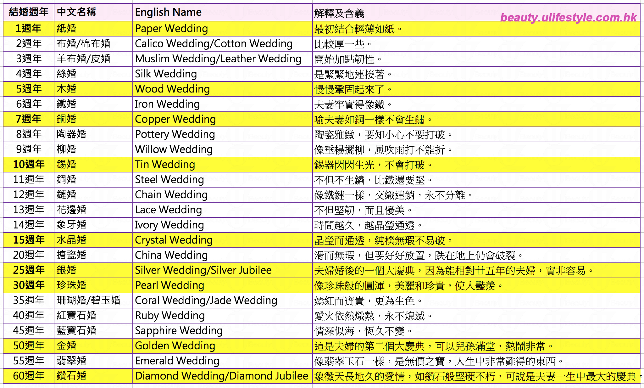 以上巧心思小tips,以週年的紀念名稱由來(如下圖)所參考的,