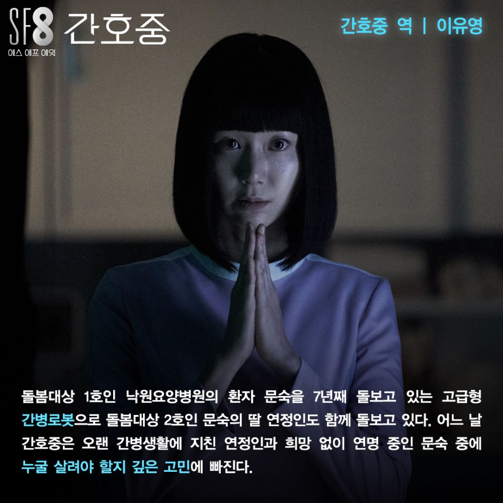《SF8》有着韓版《黑鏡》之稱,電視劇分別採用了8個與科技有關的單元故事,例如人工智能、虛擬實景、未來世界等科幻題材!雖然每個題材主線相當簡短,但卻一目了然,結合了未來世界以及現今生活作為靈感,一個又一個的故事,展述了各種科技會為人類帶來的影響,引領觀眾進行更加深層次的反思~