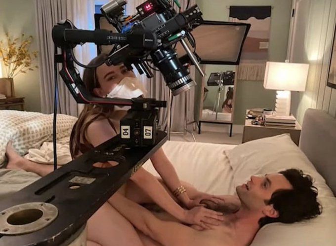 早前Netflix曝光了不少幕後花絮,其中一張照片中可見,Joe與Love正在床上拍攝親密床戲,再度上演激情場面,有不少觀眾猜測這段是描述Love懷孕前的片段。