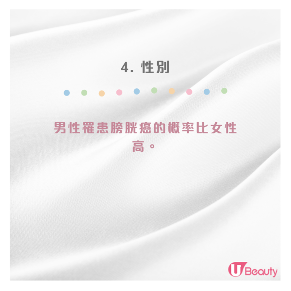 - 性別:男性罹患膀胱癌的概率比女性高。