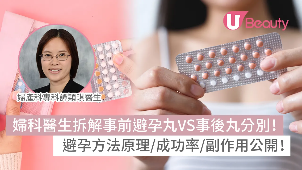 避孕方法|事前避孕丸|事後丸|原理/成功率/副作用|近年不少年輕夫婦為事業、為生活,紛紛推遲生育大計,甚至不想生兒育女,因此他們需要有效的避孕方法。根據家計會數據顯示,本港女性主要使用的避孕方法仍以男用避孕套為首選,其次為避孕藥、避孕針等方法。婦產科專科譚穎琪醫生表示:「男用避孕套作避孕方法的意外懷孕率其實接近2至18%,而避孕藥的意外懷孕率只有0.3至9%,相比之下避孕藥的避孕成功率相對較高。」避孕丸和事後丸有何分別?避孕丸會否影響懷孕?雙管齊下的避孕效果會否更好?今次《U Beauty》請來婦產科專科譚穎琪醫生,為大家拆解避孕方法。