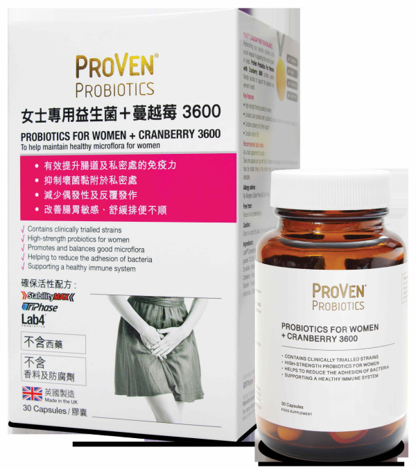 「ProVen女士專用益生菌+蔓越莓3600」令人又靚又健康,難怪連星級靚媽陳凱琳都是長期捧場客,大讚ProVen絕無西藥成分及副作用,靠得住!ProVen醫學級益生菌經歐洲最大型雙盲臨床測試,加上免疫微生物學家Dr. Nigel Plummer超過30年的堅實科研,不但是英國最多臨床實證的益生菌品牌,更是英國No.1益生菌品牌!配合獨有技術處理TriPhase & StabilityMax,確保益生菌的數量及活性之餘,產品更獲英國MHRA安管局認證,自推出以來一直口碑載道。真人用家實證,7天增加私密處益生菌菌叢,有效減少私密處不適,無論是痕癢、灼痛、異味還是分泌物都統統消失!