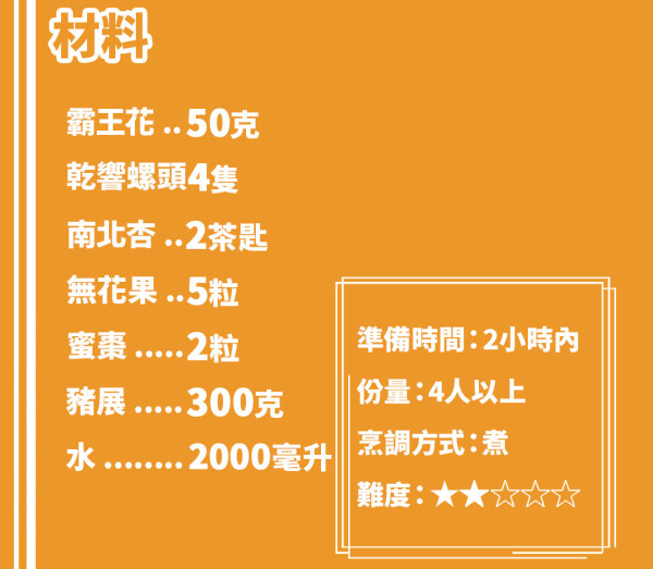 最近流感高峰期很容易生病喉嚨痛,秋天湯水也不忘增強抵抗力,霸王花無花果響螺湯中無花果有潤肺止咳的功效,而且可以健胃清腸,改善消化不良、食慾不振等情況。