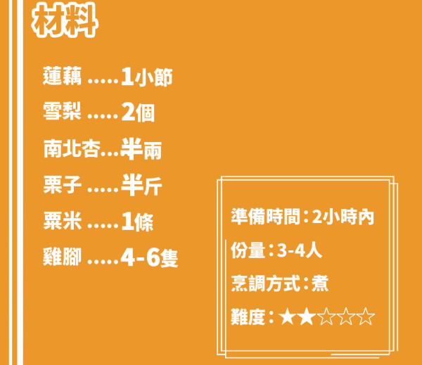 秋天湯水食譜推介 2. 海底椰栗子潤喉湯