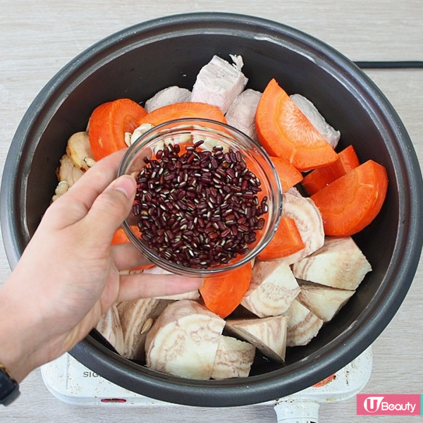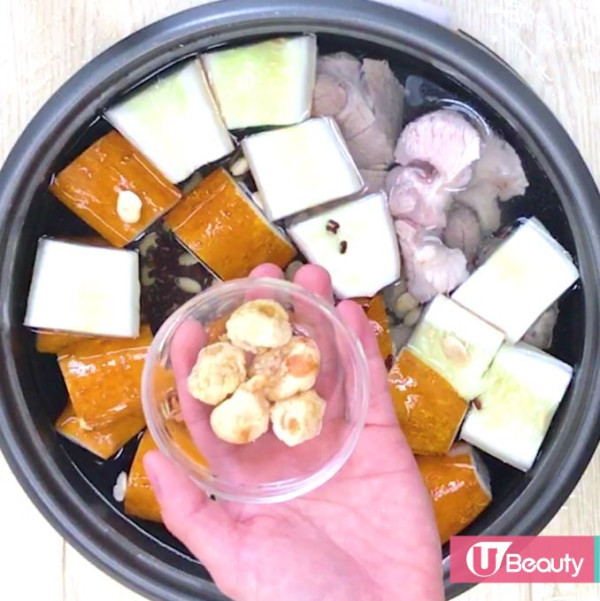 - 將所有材料倒入湯煲,水滾後煲2小時,最後加鹽調味後便完成