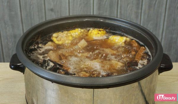 - 將其餘乾貨材料洗淨。水滾後加入所有材料後轉小火煲2-3小時