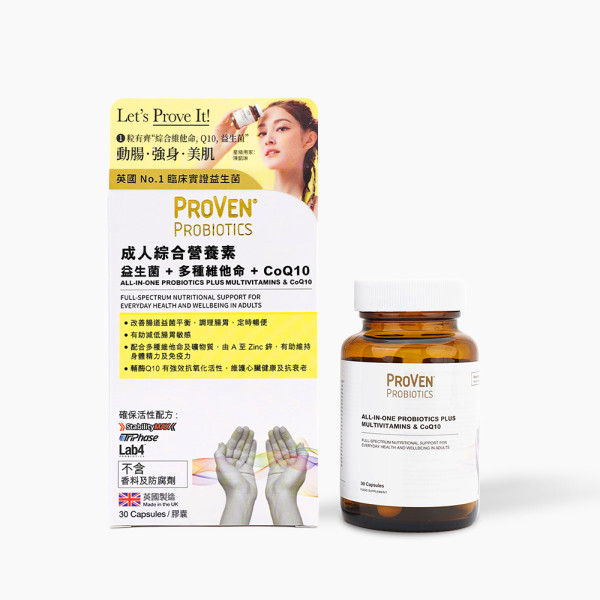 與其自己開藥方,不如交給專家為你精挑細選完美營養組合。英國人氣健康品牌「ProVen All-in-One成人綜合營養素」主打1粒有齊維持人體健康的成分,除了組合出足夠一天所需的多元配方,更特別針對人體最大免疫器官「腸道」入手,選用獨家Lab4®益生菌,能改善用家腸道益菌平衡,調理腸胃打好基礎,自然有助減低腸胃敏感機會。