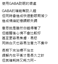 不少網民都大讚GABA能夠快速入睡,不過其實GABA是什麼? GABA其實是一種存在人體與食物中的天然胺基酸,屬於抑制性神經傳遞物質,能夠降低神經元的興奮性,幫助大腦與身體放鬆。