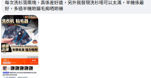 「洗衫時掉一舊入去,少咗好多毛」網民反應