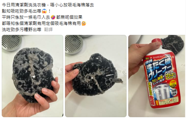 近年興起不少洗衣機清潔劑,不過原來單靠洗衣機清潔劑,未必能夠完全清走洗衣機內的污垢?近日Threads上流傳一位網友實測,清洗洗衣機時,誤將「吸毛海棉」放入其中,配合洗衣機清潔劑,竟比平日使用毛巾更能洗出當中的污垢,更直言「洗咗勁多污糟野出嚟」,畫面亦可見清潔效果相當明顯!