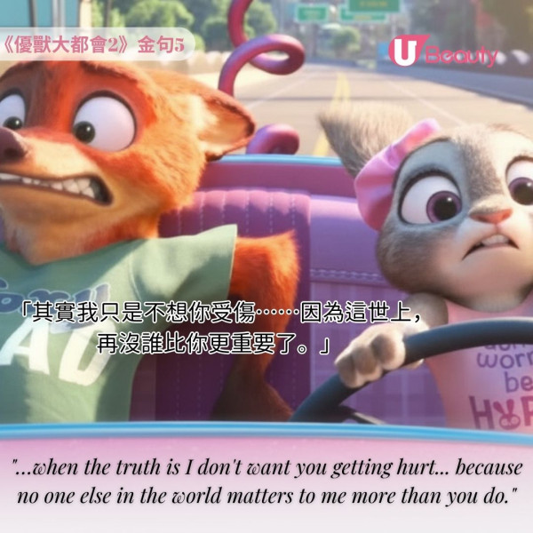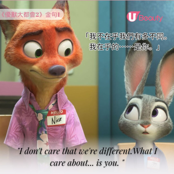 《優獸大都會2》金句1: 「我不在乎我們有多不同。我在乎的……是你。」