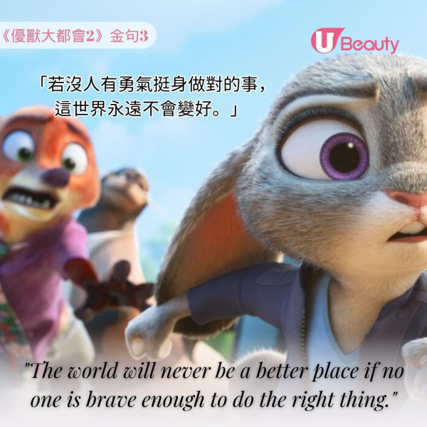《優獸大都會2》金句3: 「若沒人有勇氣挺身做對的事,這世界永遠不會變好。」