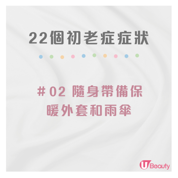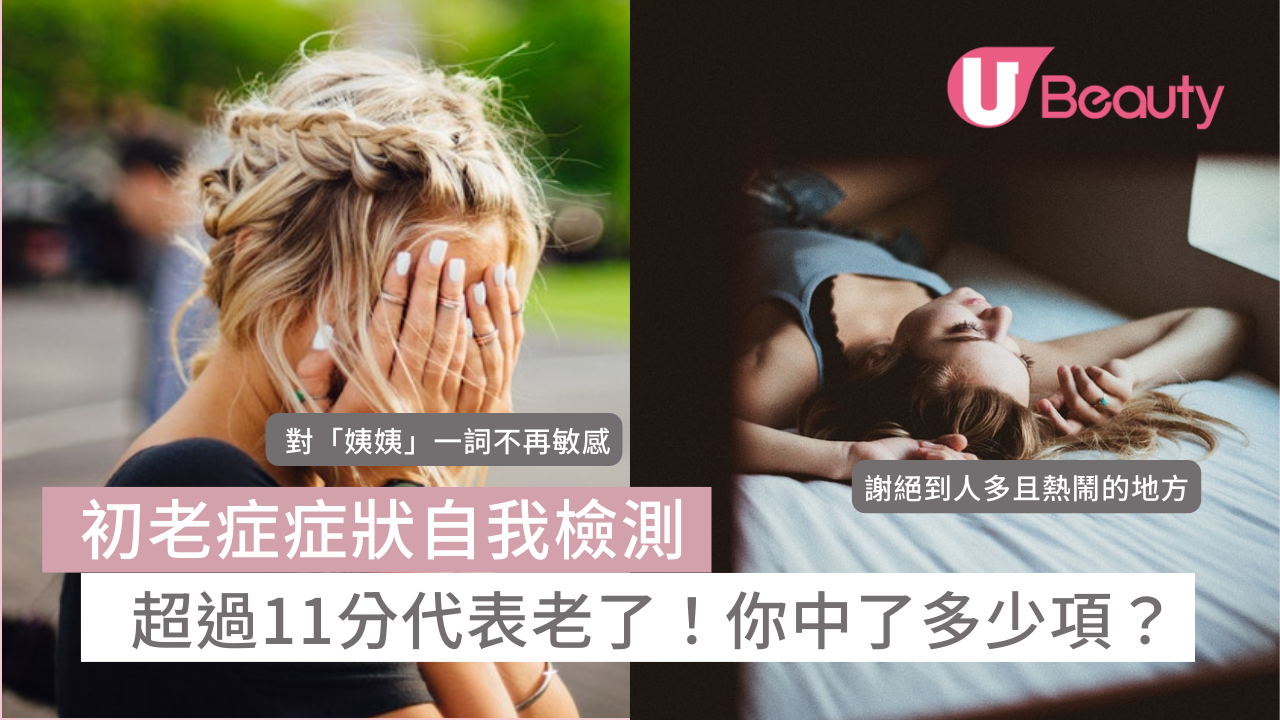 初老症症狀自我檢測|22個初老症特徵測驗|你曾有這樣的感覺嗎?身體比起十多歲時大不如前、熬夜像要拿掉你的命一樣,甚至乎會越來越緊張自己的身體狀況,現今在這個生活步調緊湊的時代,不少女生因為現實中各種壓力,導致內在老化的速度比外在還要快,年紀輕輕就出現各種初老徵兆!《U Beauty》特意為大家整理22個初老症症狀,來看看自己中了多少項吧!