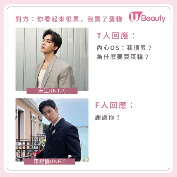 文章由《就醬Young》授權轉載,原文:1秒分辨T人或F人!MBTI人格在“7种对话”的不同回应