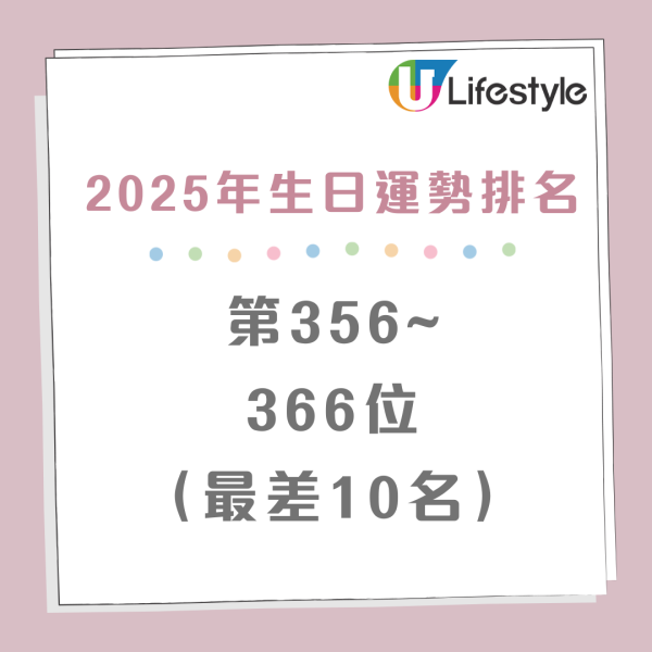 2025年生日運勢排名|排名第356至366位(最差10名)