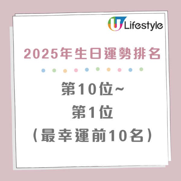 2025年生日運勢排名|第10位至第1位(最幸運前10名)