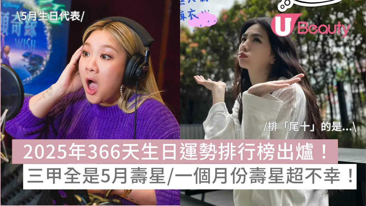 2025年366天生日運勢排名|生日運勢占卜|日本知名占卜網站「占いちゃんは考えた」每年都會公開「366天生日運勢排名」,為不同生日日子的大家預測來年運勢。2025年366天生日運勢排行榜剛出爐,三甲被5月壽星包攬,而其中「一個月份」則有多位排最尾十位。想知新一年你會不會是最幸運的人?最不幸的又是哪天生日的人?馬上看看2025年生日運勢排名榜單結果及建議!