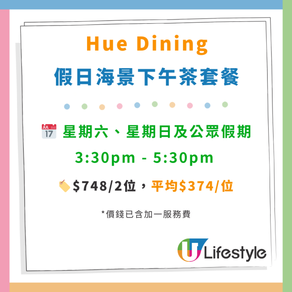 兩位用:港幣698元*/一位用:港幣368元*(星期六、日及公眾假期)