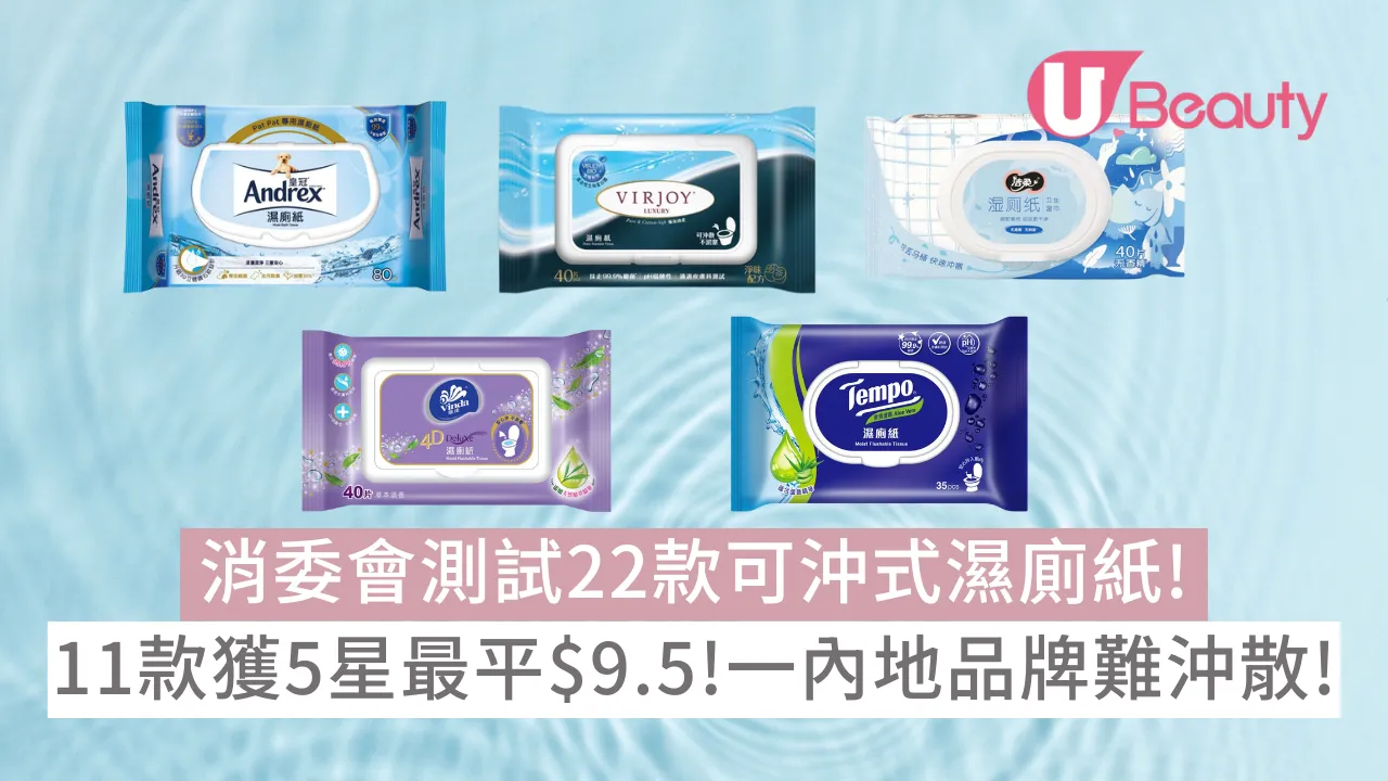 消委會可沖式濕廁紙測試|近年可沖式濕廁紙愈來愈流行,不少人都轉用濕廁紙,方便潔淨私密部位,而濕廁紙的衛生、防菌以及沖散表現更是非常重要。消委會首次聯同廣州消委會及澳門消委會,就市面上的22款濕廁紙進行測試,發現大部份濕廁紙樣本都表現良好,11款獲5星評分,包括維達、VIRJOY、潔柔等品牌,但價錢差距相當大。只有品牌「全棉時代」的濕廁紙沖散表現不如理想,或會令廁所和渠道淤塞。