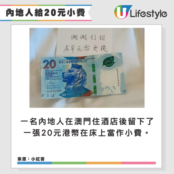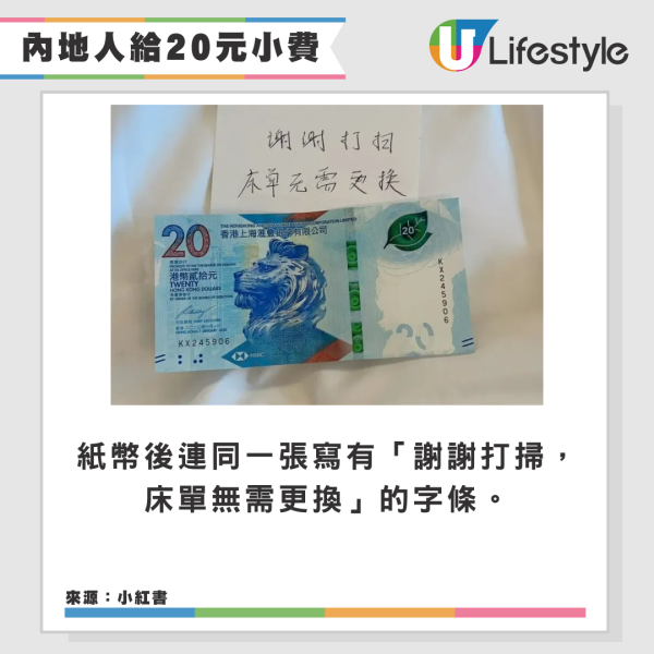 ▼內地人住酒店給「$20貼士」惹不滿▼