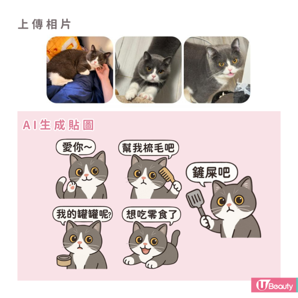 幾分鐘內就能打造屬於你、主子、你們的故事貼圖。除了通訊軟件用,也可拿來印周邊:手機殼、帆布袋、貼紙通通可!一起來看看如何從零開始,幾分鐘內就生出一整套貼圖吧!按實測及網民分享,付費版的ChatGPT Plus可一次生成較多的貼圖 (4-9款),每次要求生成數量愈少,插圖愈細緻,還原程度更佳;免費用戶建議每次生成一張,再結合成為貼圖包。