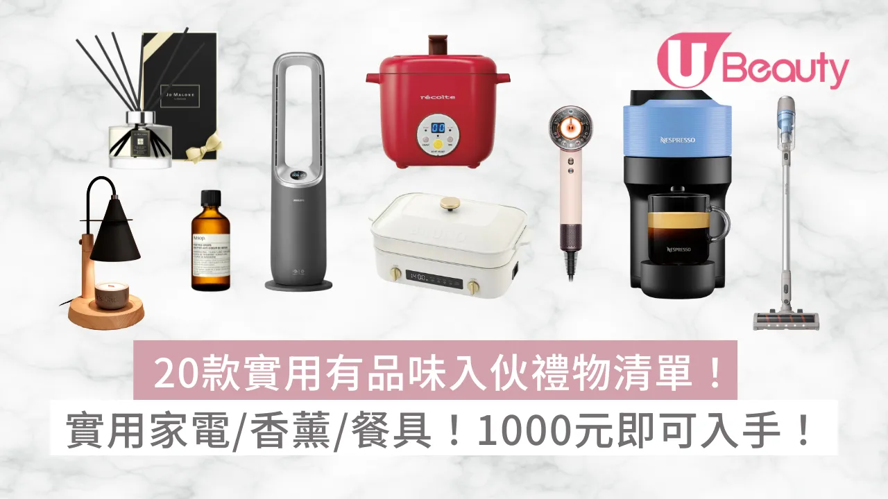 入伙禮物|新屋入伙要買什麼?入伙送什麼禮物?house warming 帶什麼?入伙禮物幾錢?當收到朋友或摯愛新居入伙的喜訊,除了為他們感到高興外,隨之而來的往往是「送咩好?」這個世紀難題。一份恰到好處的入伙禮物,不僅是心意的表達,更是對他們新生活的祝福。要在芸芸眾多的選擇中,挑選出一份既得體又貼心的禮物,確實需要花點心思。 今次,U Beauty為你精心整理了一份20+入伙禮物推薦清單,從經典不敗的廚具、提升幸福感的家電,到營造氛圍的香薰,甚至千元以下的體面之選,助你輕鬆送出令人讚不絕口的完美禮物!
