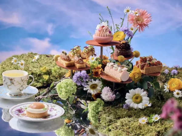 港島香格里拉大堂酒廊呈獻的「花樂園下午茶」,以繁花綻放為主題,運用大量鮮艷的花卉點綴下午茶層架,以淡雅的食用花提升鹹鮮美食,將櫻花、柑橘花等融入甜點,帶來一場極致的視覺盛宴。