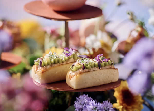 「花樂園下午茶」提供3款鹹點包括火腿蜜桃開心果多士、龍蝦牛油果卷及吞拿魚韃靼配魚子醬。另外,除了標誌性的鬆餅外,更可品嘗由糕餅主廚精心製作的甜點,如朱古力柑橘花、柚子蛋白批及士多啤梨櫻花卷等,享受鹹甜交融的滋味。