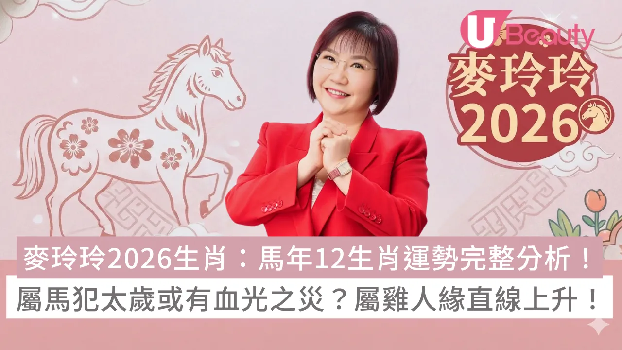 2026麥玲玲馬年12生肖運程分析|即將踏入2026馬年,堪輿學家麥玲玲分析來年12生肖的詳細運程,包括事業運、財運、感情運、健康運,以及整體吉凶運程。想了解自己的生肖是否犯太歲?來年又會否迎來好運?犯太歲有應該如何化解方法?即看麥玲玲馬年生肖運程分析!