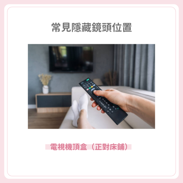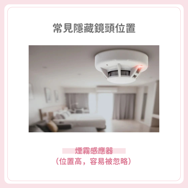 不只普通情侶,經常需要外遊拍攝的KOL其實也是高危一族!現在的針孔鏡頭越出越細,令人防不勝防。無論是去旅行還是 Staycation,入房後第一件事一定要檢查清楚環境!有專家指出以下這些位置是偷拍狂的最愛,大家Check房時要特別留神: