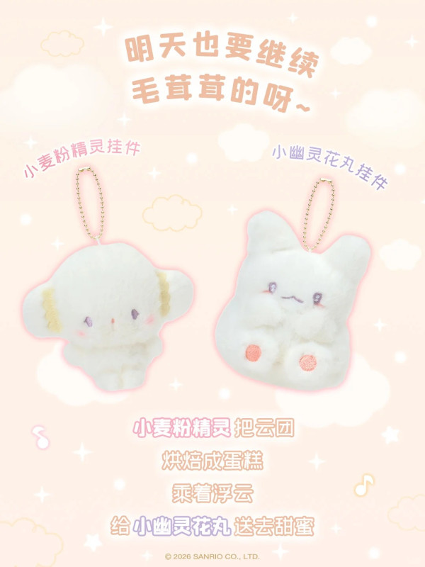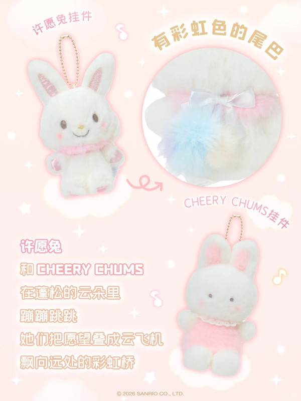 除了公仔,這次還有較小尺寸的吊飾,陣容更龐大!除了上述角色,還有 Wish me mell等角色也在今個系列登場。全白的造型配上金色珠鍊,質感滿分。