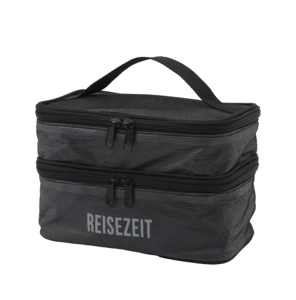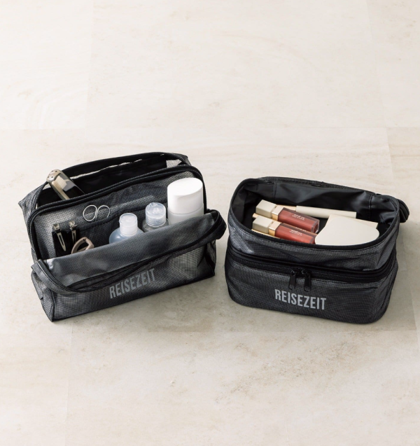 這款化妝袋採用上下兩層的結構設計,同樣採用TPU材質,在浴室或泳池邊使用也不易受潮,使用時可以在化妝袋底層放高瓶身的化妝水或乳液,上層放眼影、唇膏等彩妝小物,實現「乾濕分離」或「類別分明」的收納儀式感。