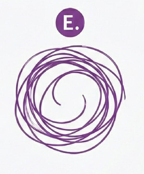 E. 沒有固定起點,畫了好幾圈才停下來(螺旋狀)。
